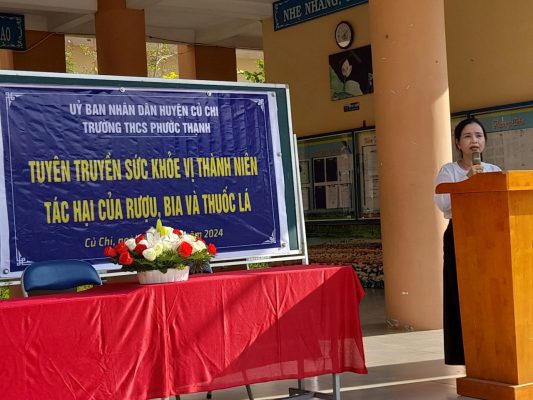 Sáng ngày 11/03/2024, Ban chỉ đạo Công tác Dân số và phát triển xã Phước Thạnh phối hợp với Trung tâm Y tế huyện, Trạm y tế xã và trường Trung học cơ sở Phước Thạnh tổ chức truyền thông chuyên đề: chăm sóc sức khoẻ sinh sản vị thành niên, tác hại rượu, bia và thuốc lá cho các em học sinh độ tuổi từ 12 đến 15 tuổi có 1.220 em học sinh tham dự.