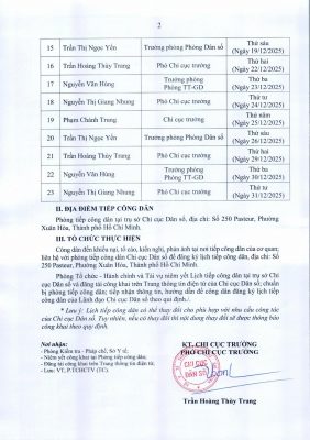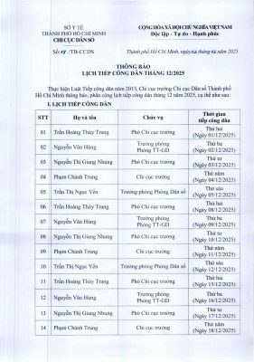 THÔNG BÁO LỊCH TIẾP CÔNG DÂN THÁNG 12 NĂM 2025