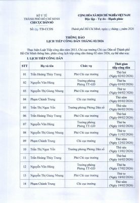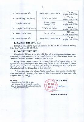 LỊCH TIẾP CÔNG DÂN THÁNG 02/2026