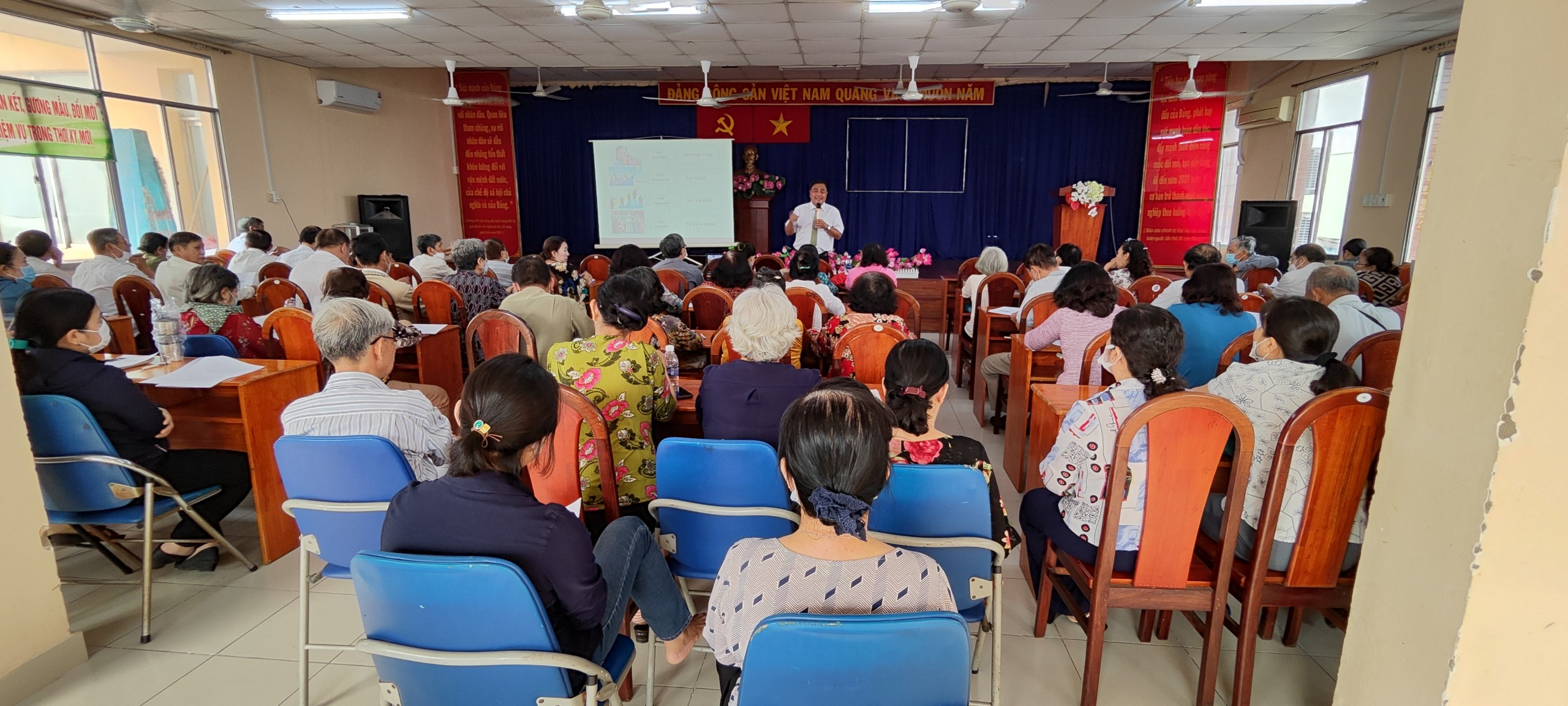 Đến tham dự có bà Lê Thị Thanh Thảo – Phó trưởng Phòng y tế Quận 6; ông Đinh Công Danh – Giảng viên Trường Trung cấp Nhân Đạo đồng thời cũng là báo cáo viên, cùng với hơn 150 người cao tuổi tham dự.