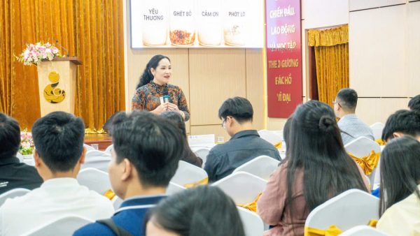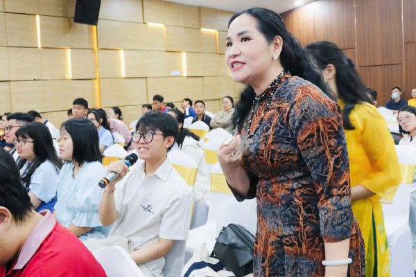 Tiến sĩ tâm lý Tô Nhi A truyền thông với chủ đề “Cùng xây mái ấm” cho các cặp đôi tham dự tại hội nghị