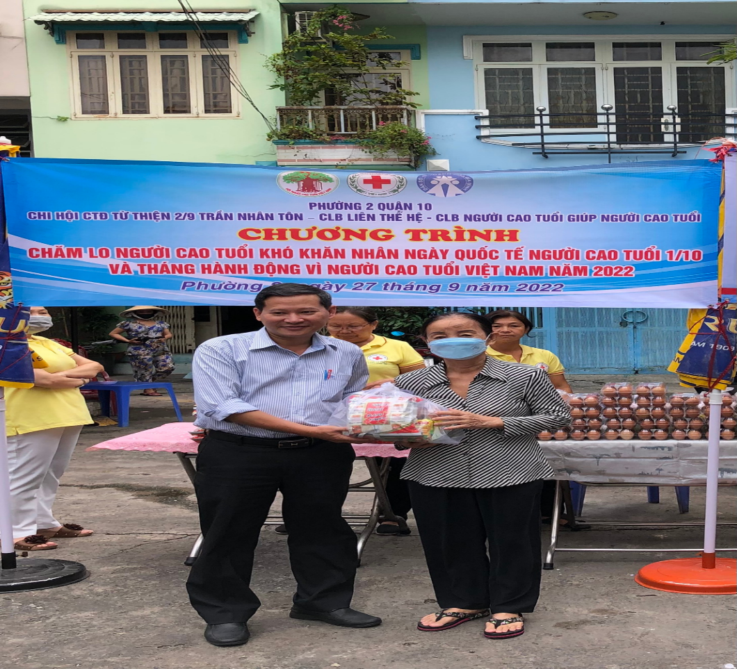 Nhằm chào mừng kỷ niệm ngày Quốc tế Người cao tuổi và Tháng hành động người cao tuổi 1/10. Vào lúc 14 giờ 00, ngày 27/9/2022, Ban chỉ đạo công tác Dân số – Kế hoạch hóa gia đình Phường 2 phối hợp cùng với Hội người cao tuổi – Câu lạc bộ Người cao tuổi – Câu lạc bộ Liên Thế hệ – Chi hội CTĐ từ thiện 2/9 Trần Nhân Tôn đã trao tặng 40 phần quà cho 40 người cao tuổi khó khăn của 08 khu phố. Đến tham dự có ông Phan Vũ Sơn – PBT đảng uỷ – Chủ tịch UBND Phường 2 cùng 15 thành viên câu lạc bộ người cao tuổi giúp người cao tuổi.