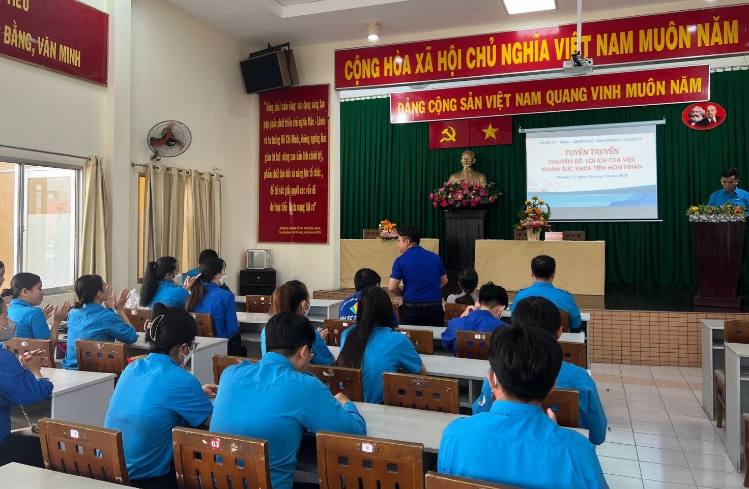 Ngày 05/10/2022, Ban Dân số – Kế hoạch hoá gia đình Phường 13 Quận 10 tổ chức buổi Truyền thông lợi ích của việc khám sức khỏe tiền hôn nhân cho 50 thanh thiếu niên trên địa bàn 8 khu phố.