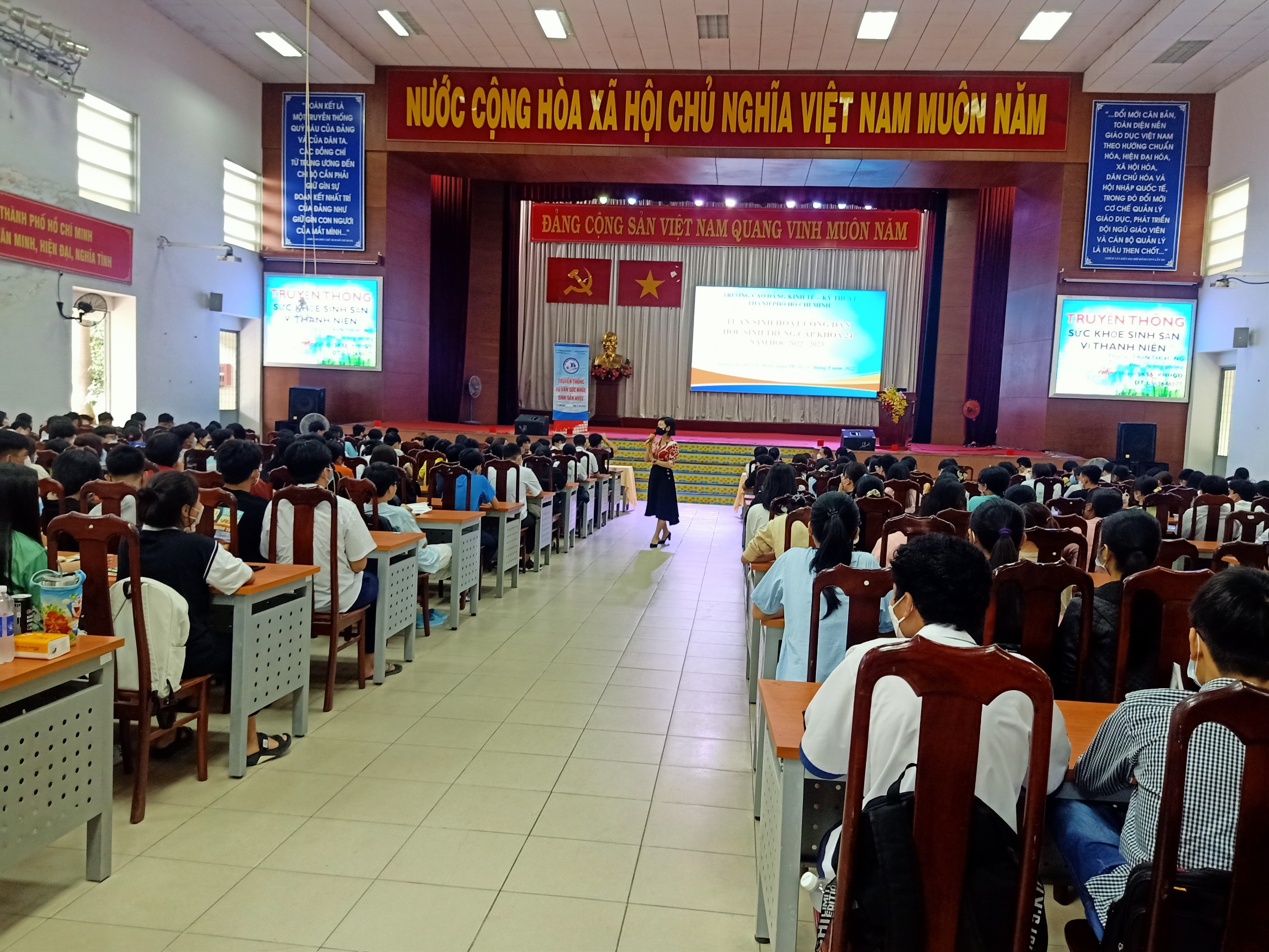 Đến tham dự có Ban Giám hiệu, các Thầy/Cô trong nhà trường và đại diện phòng Công tác học sinh, sinh viên các trường cùng Thạc sĩ Trần Thị Hồng – Phó Trưởng Phòng khám Sức khỏe sinh sản – Kế hoạch hóa gia đình cũng là báo cáo viên trong buổi truyền thông.