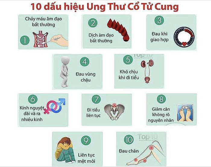 Dấu hiệu lâm sàng có thể chỉ thấy ra khí hư đơn thuần hoặc lẫn máu ở âm đạo, đặc biệt ra dịch rất hôi ở bệnh nhân có tổn thương hoại tử nhiều. Đa số các trường hợp bệnh nhân xuất hiện ra máu âm đạo tự nhiên ngoài chu kỳ kinh hoặc sau sinh hoạt tình dục.