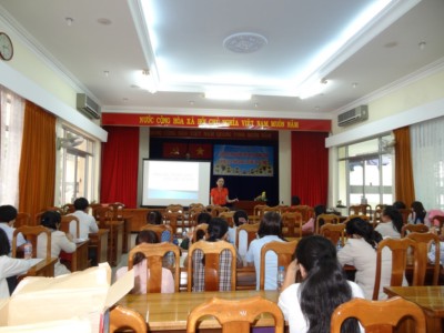 Báo cáo viên do Bà Nguyễn Ánh Loan – Trưởng khoa Chăm sóc Sức khỏe sinh sản Trung tâm y tế dự phòng Quận 5 tuyên truyền các chính sách hỗ trợ cho đối tượng hộ nghèo, cận nghèo thực hiện khám Sàng lọc trước sinh (3 tháng, 6 tháng) miễn phí tại Trung tâm Y tế dự phòng Quận 5./.