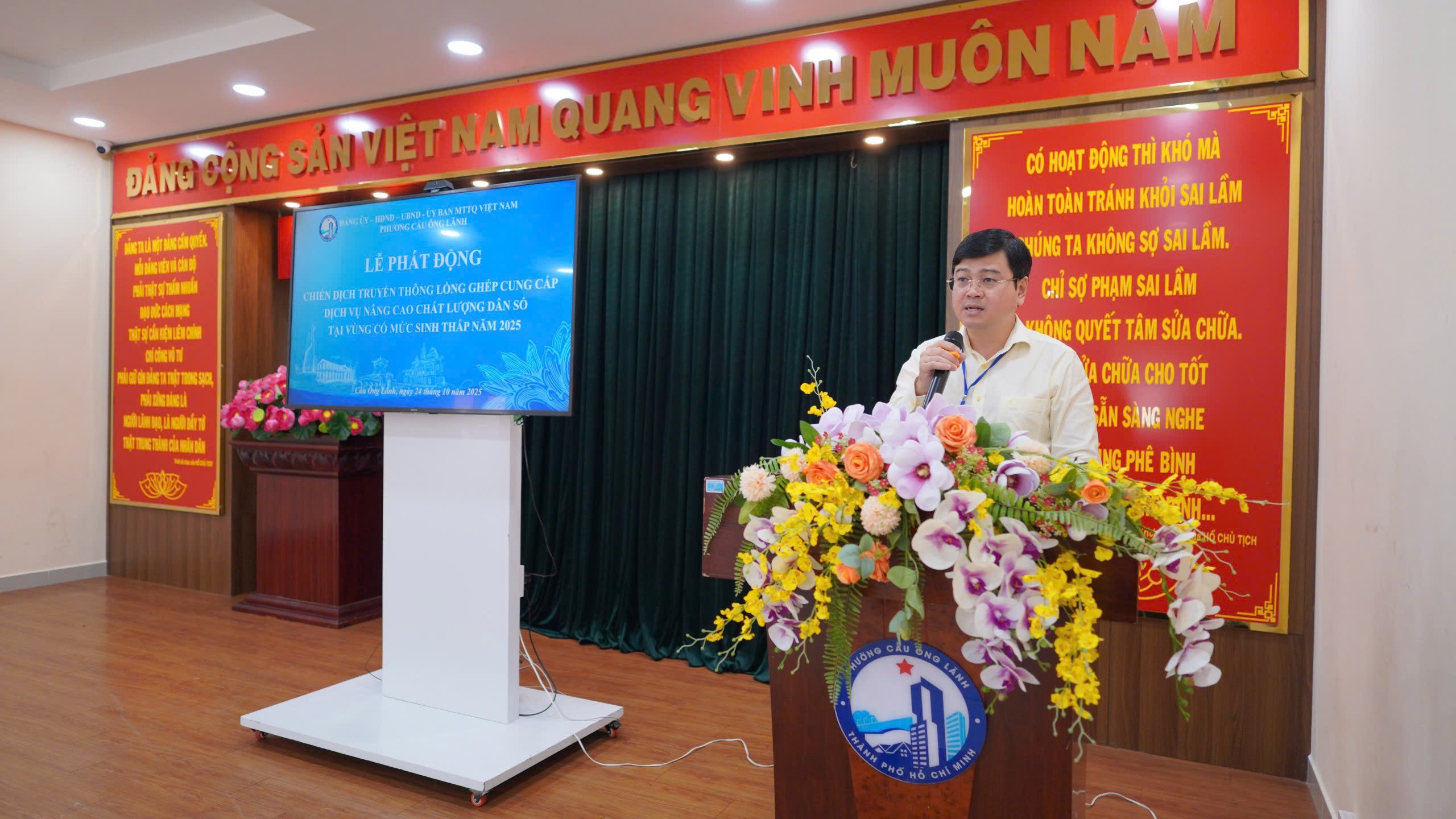 Phát biểu tại Lễ phát động chiến dịch, ông Đinh Vũ Thắng nhấn mạnh: “Nâng cao chất lượng dân số là nhiệm vụ trọng tâm, mang ý nghĩa chiến lược lâu dài, đồng thời là trách nhiệm của mỗi cá nhân, gia đình và toàn xã hội.” Chiến dịch được triển khai từ ngày 15/9 đến 30/10/2025, nhằm giải quyết tình trạng mức sinh thấp, kiểm soát mất cân bằng giới tính khi sinh, thích ứng với già hóa dân số và nâng cao chất lượng dân số, góp phần thực hiện thắng lợi các mục tiêu phát triển kinh tế – xã hội của Thành phố và của phường Cầu Ông Lãnh.
