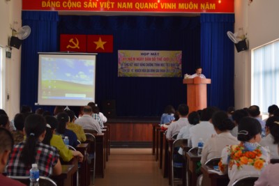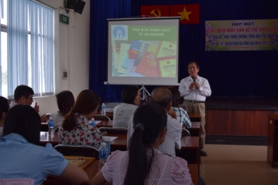 Tại buổi họp mặt, Ông Đỗ Quốc Tiến – Phó Trưởng phòng Y tế đã báo cáo tóm tắt ý nghĩa ngày Dân số Thế giới 11/7, tổng kết những mặt đạt được và những tồn tại trong giai đoạn 2011-2015, kết quả thực hiện chương trình mục tiêu quốc gia Dân số – Kế hoạch hóa gia đình.