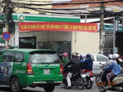 Các băng rôn treo trên các tuyến đường hưởng ứng Ngày Dân số Thế giới 11/7