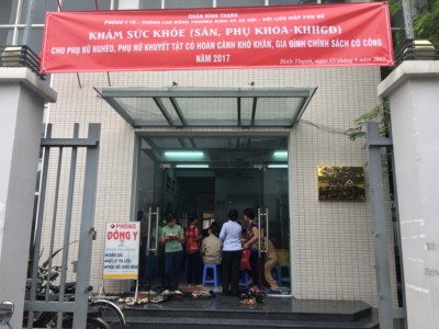 Ngày 15/9/2017 tại Trạm Y tế Phường 3, quận Bình Thạnh, Phòng Y tế, Phòng Lao động Thương binh & Xã hội và Hội Liên hiệp Phụ nữ quận Bình Thạnh phối hợp với Phòng khám Sức khỏe sinh sản – Kế hoạch hóa gia đình Thành phố tổ chức khám và điều trị bệnh phụ khoa miễn phí cho 247 phụ nữ nghèo khuyết tật, có hoàn cảnh khó khăn, gia đình chính sách có công cách mạng trên địa bàn quận không có điều kiện tiếp cận các dịch vụ chăm sóc sức khỏe sinh sản – Kế hoạch hóa gia đình được khám sàng lọc và điều trị các bệnh phụ khoa thông thường bao gồm các gói dịch vụ như: Thực hiện pap-smear, soi tươi huyết trắng, siêu âm, làm một số xét nghiệm cần thiết… Riêng các trường hợp bệnh nặng được giới thiệu điều trị miễn phí ở tuyến trên và 100% phụ nữ có gia đình đều được tầm soát tế bào ung thư cổ tử cung (kinh phí do ngân sách quận hỗ trợ). Đặc biệt, trong dịp này Phòng Y tế quận đã vận động các nhà tài trợ tặng 247 phần quà cho các đối tượng tham dự (01 lốc Yakult và phần quà Dạ Hương).