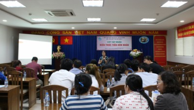 Báo cáo viên lớp tập huấn gồm: Bà Đinh Thị Thu Trang, phụ trách khoa Dân vận, Học viện Cán bộ Thành phố báo cáo chuyên đề các giai đoạn của cuộc sống hôn nhân và giải quyết mâu thuẫn trong đời sống vợ chồng; Ông Nguyễn Trí Hiệp, chuyên viên Sở Lao động – Thương binh và Xã hội Thành phố báo cáo chuyên đề Bình đẳng giới trong gia đình với kỹ năng quản lý kinh tế, phân công lao động và tổ chức cuộc sống gia đình; Bác sĩ Lê Thị Kim Phượng, Trung tâm Y tế Dự phòng Thành phố báo cáo chuyên đề chế độ dinh dưỡng trong giai đoạn Tiền hôn nhân, Sức khỏe sinh sản Tiền hôn nhân; Luật sư Trần Thị Ngọc Nữ, Hội Nữ trí thức Thành phố báo cáo chuyên đề kiến thức pháp luật cần thiết về Tiền hôn nhân.