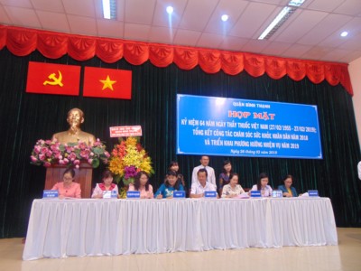 Vào lúc 8 giờ 00 ngày 26/02/2019, Quận ủy – HĐND – UBND – UB.MTTQVN quận Bình Thạnh tổ chức họp mặt kỷ niệm 64 năm ngày Thầy thuốc Việt Nam (27/02/1955 – 27/02/2019). Tham dự có các đồng chí Phạm Thị Mỹ Lệ – Phó Chi Cục Trưởng Chi cục Dân số – Kế hoạch hóa gia đình thành phố; đ/c Lâm Đình Thắng – Phó Bí thư Quận ủy và cùng các đồng chí trong Ban Thường vụ Quận ủy; đ/c Thái Thị Hồng Nga – UVTV – Phó Chủ tịch UBND quận cùng các đồng chí Thường trực UBND quận; đ/c Hoàng Mai Quỳnh Hoa – Phó Chủ tịch UB.MTTQVN quận cùng các đồng chí trong Ban Thường trực UBMTTQVN quận; Và 220 đại biểu tham dự gồm đại diện Lãnh đạo các phòng, ban; Thành viên BCĐ chăm sóc SKND; Thành viên BCĐ công tác Dân số quận; Thường trực Đảng ủy, Thường trực HĐND, Phó chủ tịch UBND, Trưởng Trạm y tế và Chuyên trách Dân số 20 phường,…