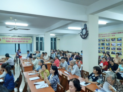 Sơ kết công tác 6 tháng đầu năm 2019. Đến tham dự hội nghị có: Bà Diệc Tuyết Mai – Chủ tịch Ủy ban nhân dân Phường 4 Quận 5 và hơn 65 người tham dự.