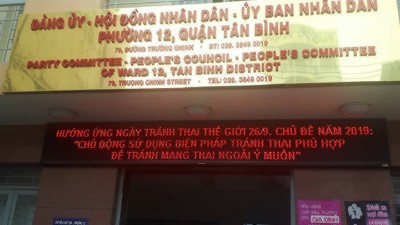 Tại 15 phường hưởng ứng Ngày tránh thai thế giới 26/9 đã thực hiện tuyên truyền bằng hình thức chạy chữ điện tử các thông điệp truyền thông về Ngày tránh thai thế giới 26 tháng 9 năm 2019. Bên cạnh đó, tổ chức phát động toàn thể cộng tác viên tiếp thị xã hội hóa các phương tiện tránh thai, vận động các đối tượng hãy lựa chọn cho mình 1 biện pháp tránh thai phù hợp để không mang thai ngoài ý muốn, nhằm tránh hậu quả nạo phá thai không an toàn. Ngoài ra, hàng tháng Câu lạc bộ tiền hôn nhân tổ chức tư vấn về khám sức khỏe tiền hôn nhân, các biện pháp phòng tránh thai cho các đối tượng thanh, thiếu niên trên địa bàn quận. Từ đó nâng cao nhận thức trong chăm sóc sức khỏe sinh sản nói chung, đồng thời chuẩn bị kiến thức, tâm lý cho cuộc sống tình dục vợ chồng sau này.