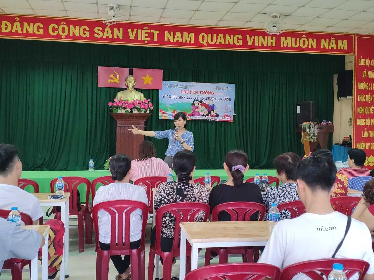 Công tác Chăm sóc sức khỏe sinh sản – Kế hoạch hóa gia đình là một bộ phận quan trọng trong chiến lược phát triển đất nước, là yếu tố nâng cao chất lượng cuộc sống của từng người, từng gia đình và toàn xã hội. Để củng cố, bổ sung các kiến thức, kỹ năng và nâng cao nhận thức cho cán bộ và người lao động về việc Chăm sóc sức khỏe sinh sản – Kế hoạch hóa gia đình, chiều ngày 22/5, tại Nhà Văn hóa Phường 14 Quận 8, Phòng Y tế phối hợp với Phòng Khám Sức khỏe sinh sản – Kế hoạch hóa gia đình thuộc Chi cục Dân số – Kế hoạch hóa gia đình tổ chức truyền thông với chủ đề: Chăm sóc sức khỏe sinh sản – Kế hoạch hóa gia đình