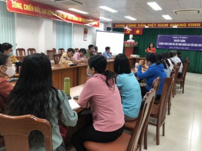 Đến tham dự buổi truyền thông có bà Phạm Thị Mỹ Lệ – Phó Chi cục Trưởng phụ trách Chi cục Dân số – Kế hoạch hóa gia đình Thành phố và cũng là báo cáo viên của buổi truyền thông, bà Dương Thị Nguyệt Mai – Phó trưởng Phòng Y tế Quận cùng các với hơn 50 ông, bà là Thành viên Ban chỉ đạo công tác Dân số – Kế hoạch hóa gia đình Quận và 14 Phường.