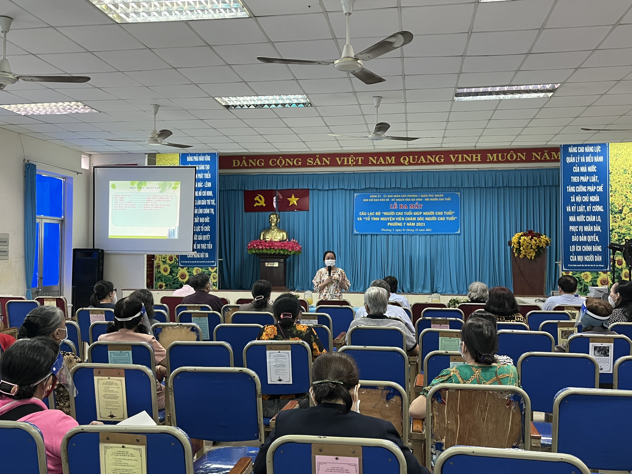 Lúc 14 giờ 00 ngày 01/12/2021 Phòng Y tế phối hợp với Hội người cao tuổi tổ chức Lễ ra mắt Câu lạc bộ “Người cao tuổi giúp người cao tuổi”, “Tổ tình nguyện viên chăm sóc người cao tuổi’’ và nói chuyện chuyên đề chăm sóc sức khỏe người cao tuổi tại Hội trường Ủy ban nhân dân phường 7, quận Phú Nhuận.
