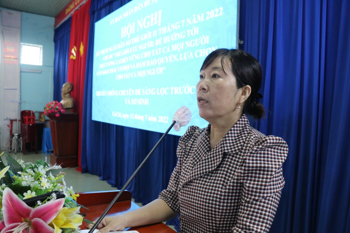 Sáng ngày 12/7/2022, tại hội trường Ủy ban nhân dân thị trấn Củ Chi, huyện Củ Chi, Phòng Y tế huyện tổ chức hội nghị kỷ niệm ngày Dân số thế giới 11/7 với chủ đề “Thế giới 8 tỷ người: Để hướng tới một tương lai bền vững cho tất cả mọi người cần khai thác cơ hội và đảm bảo quyền, lựa chọn cho tất cả mọi người”.