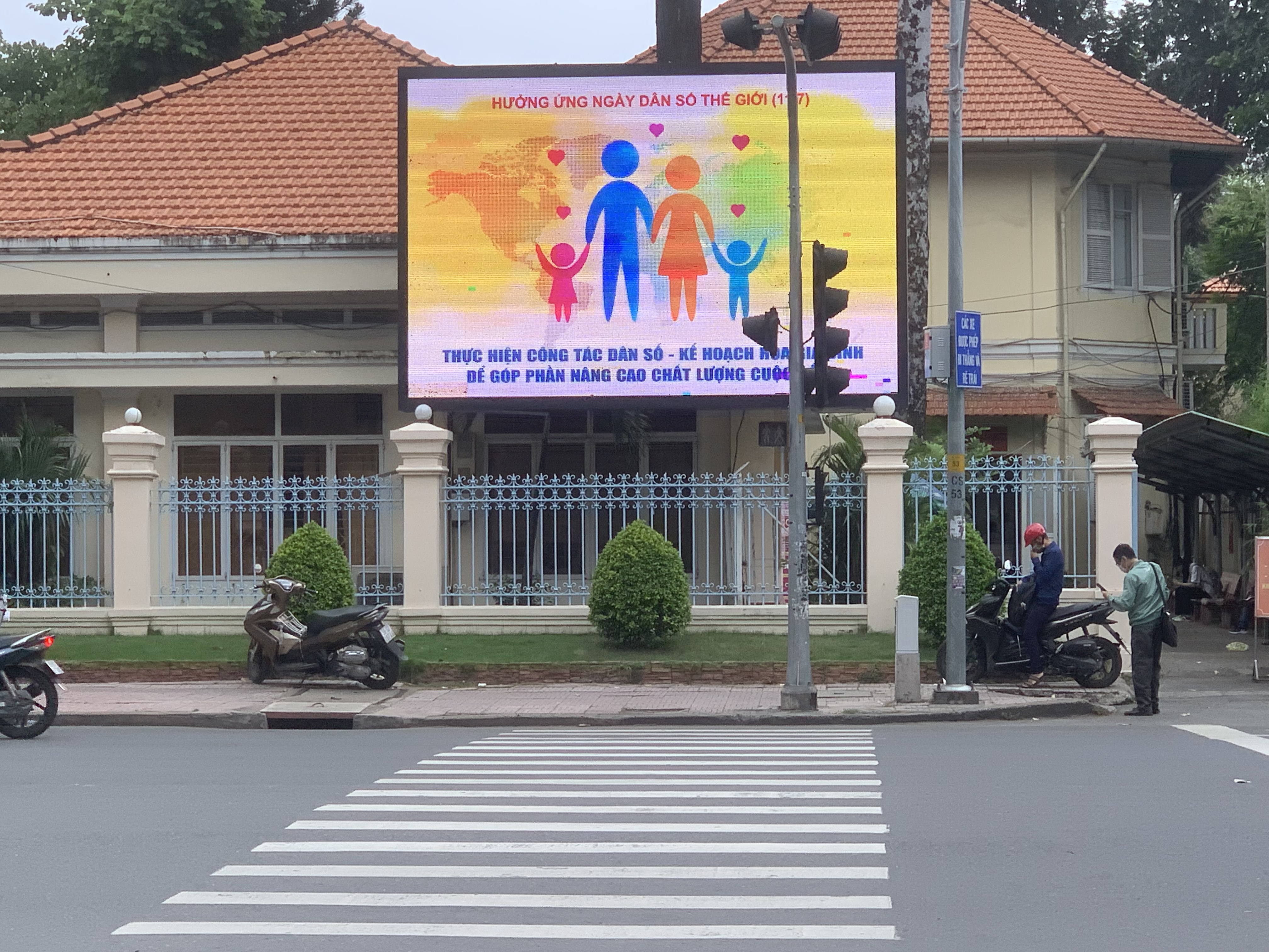 Bảng điện tử tại UBND Quận Bình Thạnh hưởng ứng Ngày dân số Thế giới 11/7