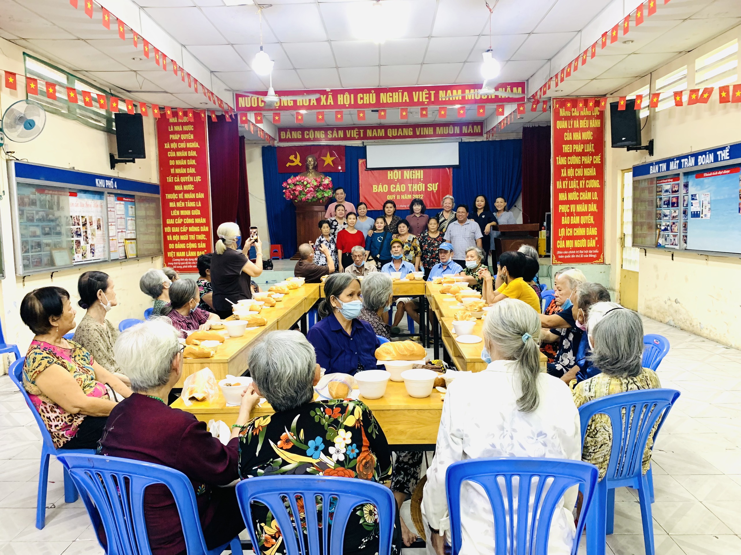 Ban Dân số Phường 19 phối hợp với Hội người cao tuổi tổ chức bữa ăn dinh dưỡng cho người cao tuổi có hoàn cảnh khó khăn