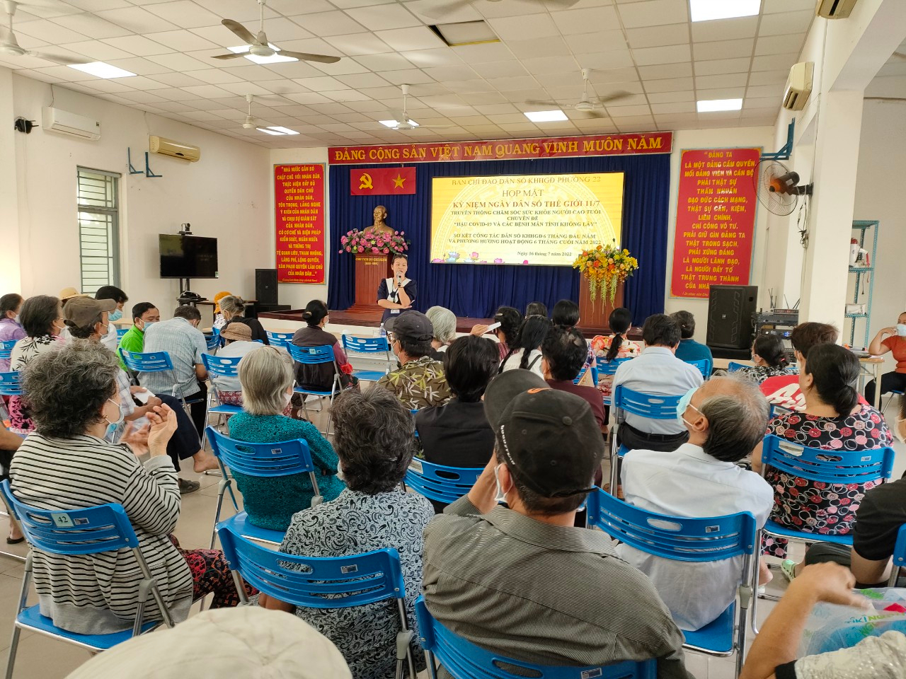 Tổ chức họp mặt Ngày Dân số 11/7, sơ kết hoạt động dân số 6 tháng đầu năm kết hợp tuyên truyền chăm sóc sức khỏe người cao tuổi hậu Covid-19 tại UBND Phường 22