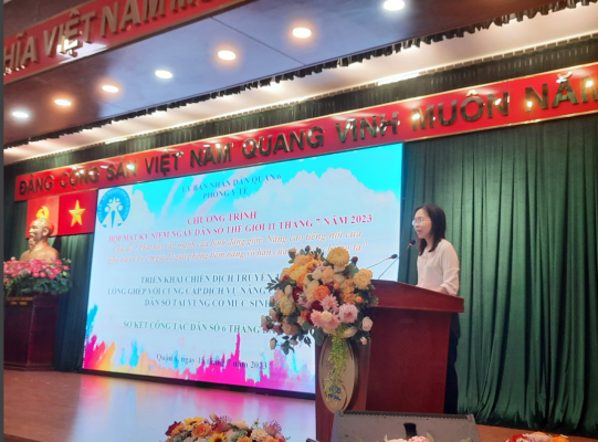 Hội nghị đã được nghe về Ý nghĩa Ngày Dân số Thế giới 11/7 với chủ đề năm 2023 là “Phát huy sức mạnh của bình đẳng giới: Nâng cao tiếng nói của phụ nữ và trẻ em gái để giải phóng tiềm năng vô hạn của thế giới chúng ta” và nội dung Chiến dịch được triển khai thực hiện tại 7 phường (phường 2,3,4,7,12,13,14); các phường còn lại hưởng ứng Chiến dịch trên địa bàn Quận từ ngày 07 tháng 7 năm 2023 đến 07 tháng 9 năm 2023.