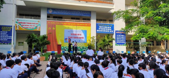 Sáng ngày 06/11/2023, Phòng Y tế huyện phối hợp trường THCS Đông Thạnh tổ chức truyền thông về chăm sóc sức khỏe vị thành niên, thanh niên với chủ đề “Nạo phá thai là hiểm họa khó lường”. Đến tham dự có Trưởng khoa chăm sóc Sức khỏe sinh sản – Trung tâm Y tế huyện Võ Thị Thanh Thu; chuyên viên Phòng Y tế huyện Lê Thị Ngọc Ánh; Hiệu trưởng trường THCS Đông Thạnh Nguyễn Thị Thu Thủy và hơn 1.500 em học sinh tham dự.