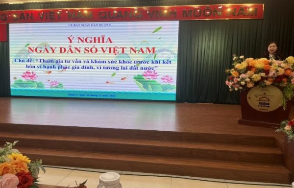 Quận 6 thực hiện báo cáo bằng hình ảnh video những hoạt động nổi bật của công tác quản lý nhà nước về lĩnh vực y tế – dân số – an toàn thực phẩm- phòng chống dịch trên địa bàn quận. Tại Hội nghị Bà Nguyễn Thị Hằng – Trưởng Phòng Y tế Quận 6 đã ôn lại ý nghĩa Ngày Dân số Việt Nam  chủ đề năm 2023 “Tham gia tư vấn và khám sức khỏe trước khi kết hôn vì hạnh phúc gia đình, vì tương lai đất nước”.