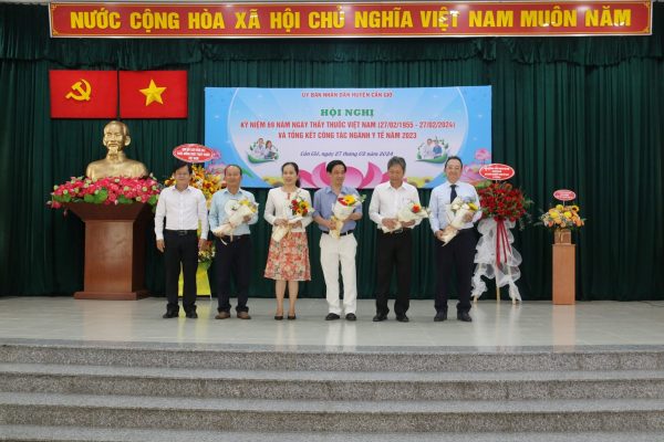Tại buổi họp mặt, các đại biểu đã cùng ôn lại truyền thống kỷ niệm 69 năm Ngày Thầy thuốc Việt Nam (27/2/1955-27/2/2024); đọc thư của Bác Hồ gửi cho ngành Y tế; báo cáo tổng kết công tác ngành Y tế huyện trong năm 2023.