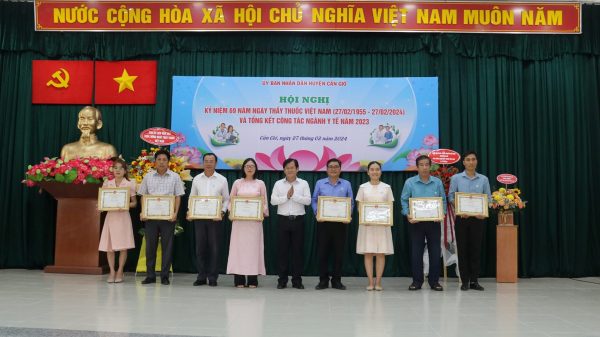 Dịp này, Ủy ban nhân dân huyện trao tặng giấy khen cho 19 tập thể và 19 cá nhân có thành tích xuất sắc công tác ngành Y tế năm 2023.