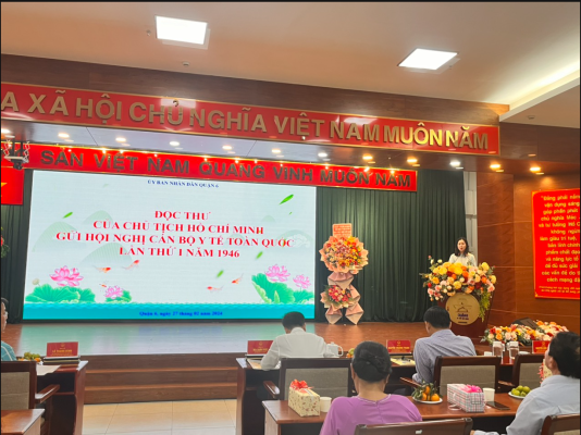 Tại Buổi họp mặt, Bà Nguyễn Thị Hằng –Trưởng Phòng Y tế Quận 6 đã ôn lại ý nghĩa Ngày Thầy thuốc Việt Nam trong Bức thư của chủ tịch Hồ Chí Minh gửi Hội nghị cán bộ Y tế toàn quốc lần thứ I năm 1946, thông qua báo cáo kết quả hoạt động Ngành Y tế trên địa bàn Quận và triển khai phương hướng hoạt động của Ngành Y tế trong năm 2024.