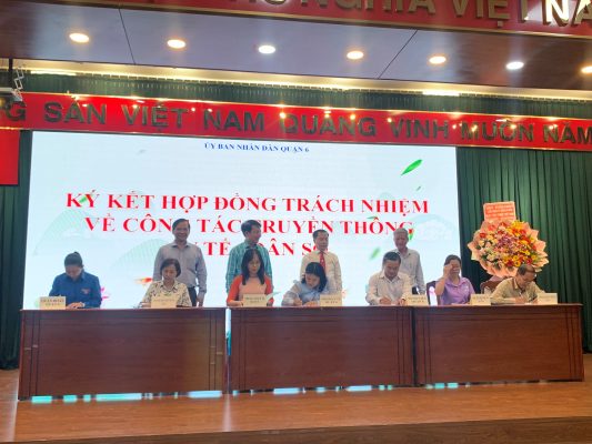 Trong buổi họp mặt, Phòng Y tế Quận 6 thực hiện ký kết liên tịch với các ban ngành đoàn thể quận về công tác Y tế – Dân số năm 2024 với sự chứng kiến của Ông Ma Xuân Việt – Bí Thư quận ủy quận 6, Ông Lê Thanh Bình – PCT. UBND – Trưởng Ban công tác Dân số – Phát triển quận 6, Ông Nguyễn Hữu Vĩnh – Trưởng Ban Tổ chức Quận ủy quận 6 và Ông Nguyễn Trường Thanh – Trưởng Ban Dân Vận Quận ủy quận 6.