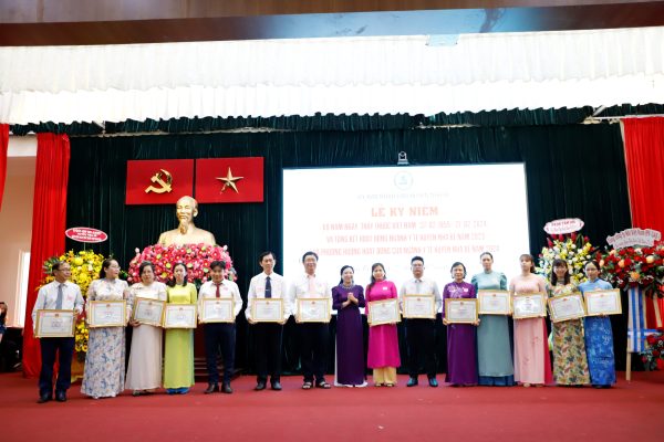 Nhân dịp này, đã trao tặng Kỷ niệm chương “Vì sức khỏe nhân dân” của Bộ Y tế cho 35 cá nhân; giấy khen của UBND Huyện cho 20 tập thể và 54 cá nhân đã có thành tích xuất sắc trong công tác chăm sóc sức khỏe nhân dân năm 2023.