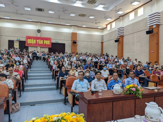 Chiều ngày 29/02/2024, tại Hội trường Ủy ban nhân dân quận Tân Phú, Phòng Y tế tổ chức Hội nghị phổ biến, tuyên truyền các quy định của pháp luật về hành nghề y, dược năm 2024. Tham dự Hội nghị có Ông Mai Đức Thọ – Trưởng Phòng Y tế quận, Ông Đặng Kim Trọng – Phó trưởng Phòng Y tế quận cùng các Ông/Bà là đại diện Hội Đông Y quận, Hội tin học y tế Việt Nam, Bảo hiểm xã hội quận, Viện cấp cứu 115 cùng hơn 300 người là các bác sĩ, dược sĩ, lương y hiện đang phụ trách chuyên môn tại các phòng khám đa khoa, chuyên khoa, Nhà thuốc, Phòng Chẩn trị Y học Cổ truyền đang hoạt động trên địa bàn quận.