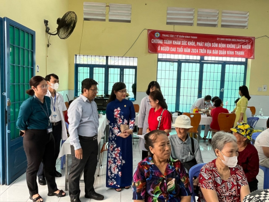 Thực hiện kế hoạch số 276/KH-UBND-YT ngày 29/12/2023 của UBND quận về triển khai khám sức khỏe, phát hiện sớm bệnh không lây nhiễm ở người cao tuổi (NCT) năm 2024, Quận Bình Thạnh tổ chức triển khai chương trình khám sức khỏe, phát hiện sớm bệnh không lây nhiễm ở người cao tuổi, đợt 1 từ ngày 07/03/2024 đến 04/04/2024.