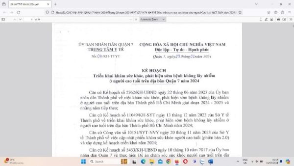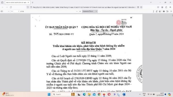 Các văn bản liên quan đến công tác triển khai Khám sức khỏe Người cao tuổi và hoạt động ngành y tế trên địa bàn Quận 7: