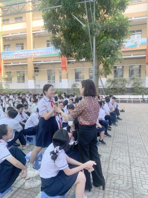 Đến tham dự có Thạc sĩ Trần Thị Hồng – Phó Trưởng Phòng khám Sức khỏe sinh sản – Kế hoạch hóa gia đình, Chi cục DS-KHHGĐ Thành phố đã cung cấp những kiến thức bổ ích về chăm sóc sức khỏe sức khỏe sinh sản vị thành niên, dinh dưỡng học đường, kiến thức về bạo lực học đường và xâm hại tình dục trẻ em, an toàn tình dục, phòng tránh mang thai ngoài ý muốn…