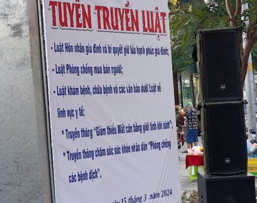 Bác sĩ Xuân Trạm Y tế P6 Q4 cùng người dân trong buổi truyền thông Mất cân bằng giới tính khi sinh tại P6 Q4