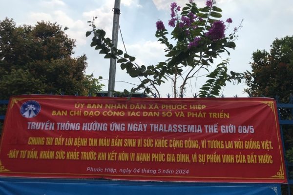 Nhằm tuyên truyền về tầm quan trọng của việc tầm soát, chẩn đoán, điều trị sớm bệnh tật trước sinh và sơ sinh; nguyên nhân, hệ lụy của bệnh tan máu bẩm sinh đối với cộng đồng và xã hội; nâng cao ý thức tự giác của các cặp đôi trước khi kết hôn cần chủ động khám và xét nghiệm sàng lọc các loại bệnh liên quan đến sức khỏe sinh sản để hưởng ứng kỷ niệm 38 năm Ngày Thalassemia thế giới (08/5/1986 – 08/5/2024).
