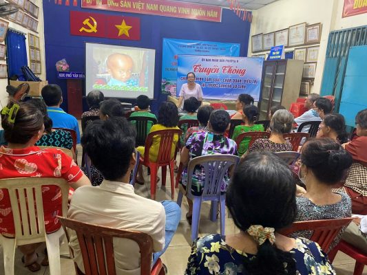 Từ ngày 07 tháng 5 đến ngày 30 tháng 5 năm 2024. Ban Dân số và Phát triển phường tổ chức 14 buổi nói chuyện chuyên đề về lợi ích của Chương trình sàng lọc trước sinh và sơ sinh; Kỹ năng thực hành chăm sóc thai nhi và trẻ sơ sinh; Giải đáp các thắc mắc thường gặp về Chương trình sàng lọc; Cách thức đăng ký và tham gia Chương trình sàng lọc cho các nhóm đối tượng phụ nữ đang mang thai, các cặp vợ chồng trong độ tuổi sinh đẻ. Báo cáo viên Thạc sĩ Trần Thị Hồng – Phó trưởng Phòng Khám Sức khỏe sinh sản thuộc Chi cục Dân số – Kế hoạch hóa gia đình thành phố và cán bộ nguyên là lãnh đạo Phòng Y tế quận 6.