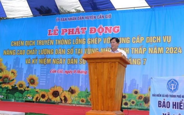 Sáng ngày 09/7, tại Trung tâm Văn hóa – Thể thao xã Bình Khánh, Uỷ ban nhân dân huyện Cần Giờ tổ chức Lễ phát động chiến dịch truyền thông lồng ghép với cung cấp dịch vụ nâng cao chất lượng Dân số tại vùng mức sinh thấp và hưởng ứng Kỷ niệm Ngày Dân số Thế giới 11/7, với chủ đề “Đầu tư cho công tác dân số là đầu tư cho phát triển bền vững”.