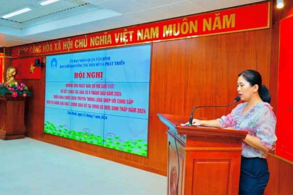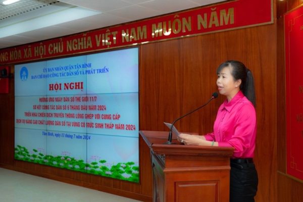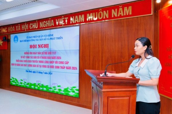 Chiều ngày 11/7, Ủy ban nhân dân quận Tân Bình tổ chức Hội nghị hưởng ứng Ngày Dân số Thế giới, sơ kết công tác dân số 6 tháng đầu năm 2024, triển khai chiến dịch truyền thông lồng ghép cung cấp dịch vụ nâng cao chất lượng dân số tại vùng mức sinh thấp trên địa bàn quận. Đến tham dự Hội nghị, có Bà Đoàn Thị Cẩm Hồng – Phó trưởng phòng Dân số – Chi cục Dân số – Kế hoạch hóa gia đình Thành phố, Bà Lê Thị Thu Sương – UVBTVQU, Phó Chủ tịch Ủy ban nhân dân – Trưởng Ban chỉ đạo công tác Dân số và phát triển quận, Bà Lê Thị Hoàng Oanh – Phó Trưởng Phòng Y tế quận và hơn 120 đại biểu tham dự là đại diện lãnh đạo các cơ quan, đơn vị quận, Ban chỉ đạo công tác Dân số và Phát triển, cộng tác viên Dân số kiêm Gia đình và Trẻ em 15 phường.