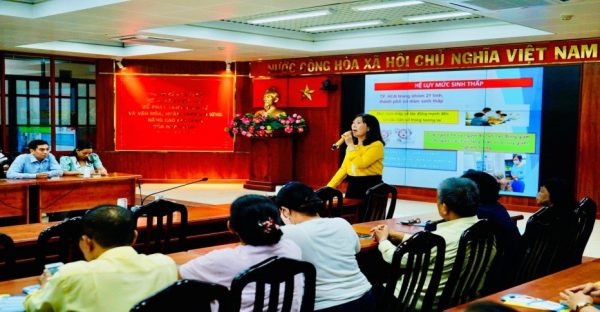 Bà Đoàn Thị Cẩm Hồng – Phó trưởng phòng Dân số – Chi cục Dân số – Kế hoạch hóa gia đình Thành phố truyền thông tại quận Tân Bình