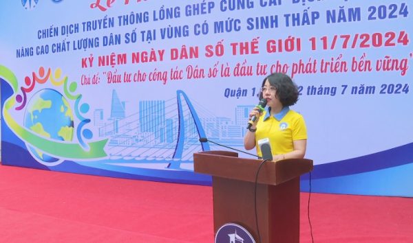 Bà Mai Thị Hồng Hoa – Quận ủy viên – Phó Chủ tịch UBND Q1 – Trưởng Ban Chỉ đạo công tác Dân số và Phát triển quận phát động chiến dịch