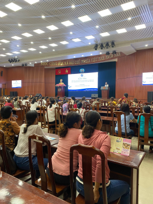 Đến tham dự có bà Đoàn Thị Cẩm Hồng – Phó trưởng phòng DS-KHHGĐ thuộc Chi cục DS-KHHGĐ Thành phố, đồng thời là báo cáo viên chuyên đề “Chăm sóc sức khỏe Người cao tuổi”, bà Võ Thị Chính – Quận ủy viên, Phó chủ tịch UBND quận kiêm Trưởng Ban chỉ đạo công tác Dân số và phát triển quận cùng các ông, bà là thành viên Ban chỉ đạo công tác Dân số và phát triển quận, phường; đội ngũ chuyên trách dân số; đại diện các ban ngành đoàn thể và đặc biệt là sự hiện diện của gần 200 cộng tác viên dân số trên địa bàn quận.