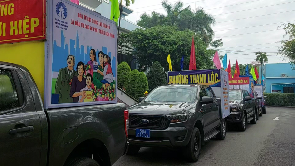 Sau khi phát động chiến dich đoàn xe hoa diễu hành gồm 12 xe (01 xe của Trung tâm Y tế và 11 xe khối phường) xuất phát tuyên truyền cổ động trên các tuyến đường chính và sau đó các xe tiếp tục tuyên truyền trên địa bàn các phường.