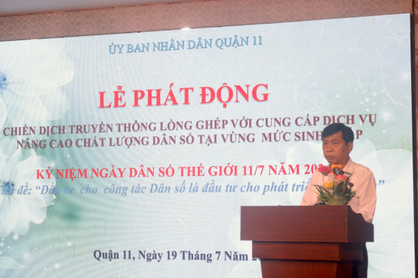 Phát biểu tại buổi lễ, Ông Huỳnh Kim Tuấn, Ủy viên Ban Thường vụ Quận ủy, Phó Chủ tịch UBND, Trưởng Ban Chỉ đạo công tác Dân số và Phát triển Quận 11, nhấn mạnh: “Tầm quan trọng của việc nâng cao chất lượng dân số, đầu tư cho công tác dân số là đầu tư cho phát triển bền vững”. Kêu gọi các ban ngành, đoàn thể và toàn xã hội chung tay thực hiện các mục tiêu của chương trình hành động, góp phần phát triển đất nước nhanh và bền vững.