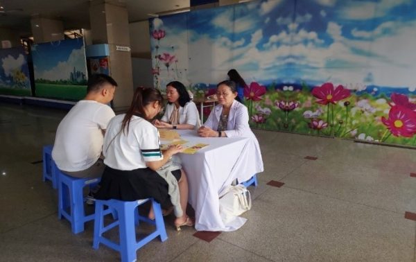 Các cặp đôi nghe tư vấn và khám sức khỏe tiền hôn nhân