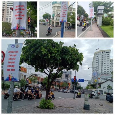 Hoạt động treo bangrol trên các tuyến đường chính của quận: đường Nguyễn Tất Thành, Đoàn Như Hài, Hoàng Diệu, Khánh Hội