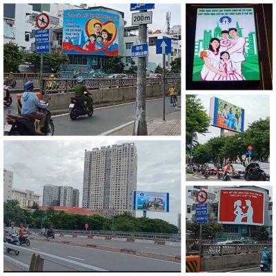 Hoạt động trình chiếu hình ảnh tuyên truyền trên các bảng điện tử Led tại khu vực Cầu Khánh Hội, Cầu Kinh tẻ, Cầu Nguyễn Văn Cừ